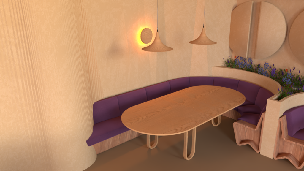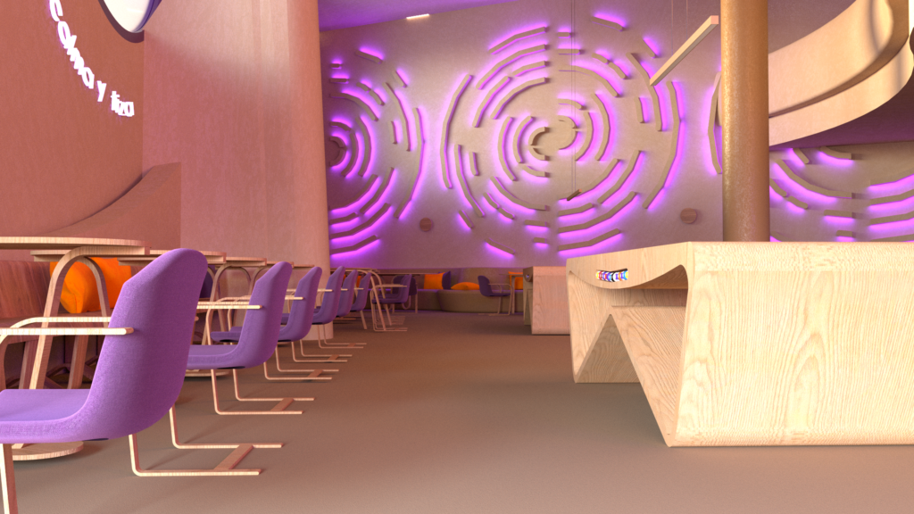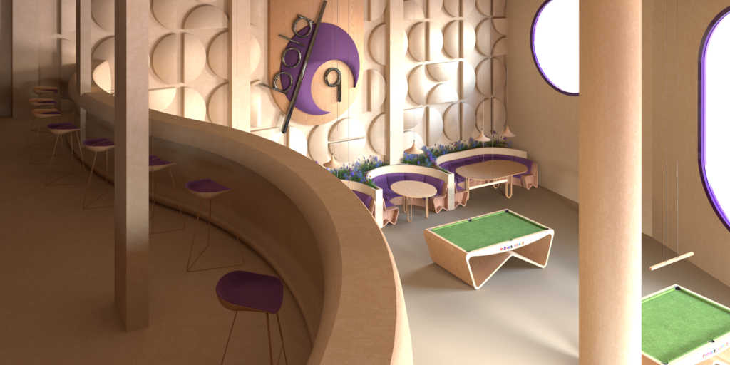The goal of the project is to fuse leisure, gastronomy, and design in a sustainable, warm, and memorable environment, where materials, lighting, and spatial composition work together to create a space adaptable to multiple uses and moments of the day. This hybrid café becomes a contemporary, flexible venue where every visit offers a unique experience.